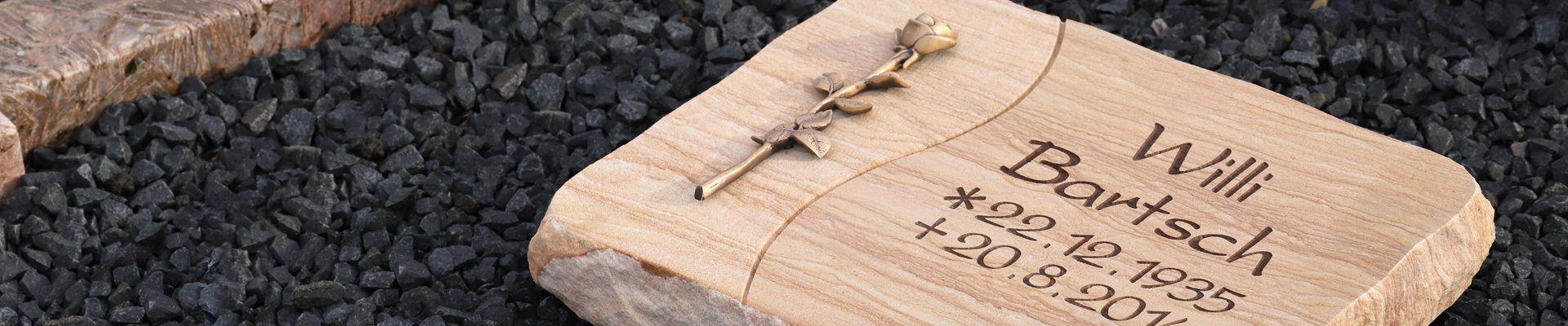 Sie suchen nach der besonderen, schönen Grabplatte für einen einen geliebten Menschen: MEMORUM-Grabmale ist der größte Online – Anbieter von günstigen Sandstrahl gravierten modernen Grabplatte und Grabsteinplatten bzw. Grabsteine für Ihr Rasengrab aus Naturstein. Wir arbeiten mit Steinmetzen in ganz Deutschland zusammen – sogar viele Bestatter gehören zu unserem Kundenstamm, Bestatter die dann unsere Grabplatten beim Trauerfall Ihren Kunden – Beisetzung gemeinsam mit einer Grabplatte von uns als Komplettpaket anbieten können. MEMORUM ist ein Steinmetz Meisterbetrieb, mit 3 Bildhauermeistern, unser Qualitätsanspruch setzt Maßstäbe, besuchen Sie unser Vielfältiges Angebot an Grabplatten für Ihr Rasengrab. Auch für Ihr großes Familiengrab wenn später eine Urne zusätzlich beigesetzt wurde, und Sie nicht möchten das der Grabstein für die zusätzliche Schrift wieder abgebaut werden muss, bietet sich eine Grabplatte von MEMORUM perfekt an. Die Grabplatte wird einfach nur in die Erde etwas schräg gelegt, und stellt dann eine würdevolle Grabstätte für Ihren geliebten Menschen dar. Bei uns zählt Qualität. Der günstige Preis resultiert aus der standardisierten Beschriftungstechnik von ausgewählten Schriften, umgesetzt in dauerhafter Sandstrahltechnik oder hochwertigen Metallguss Inschriften. Mit unseren Produkten entscheiden Sie sich für stilsichere und dauerhafte Grabgestaltungen vom Meisterbetrieb, die rationell gefertigt und deshalb so überraschend günstig sind.